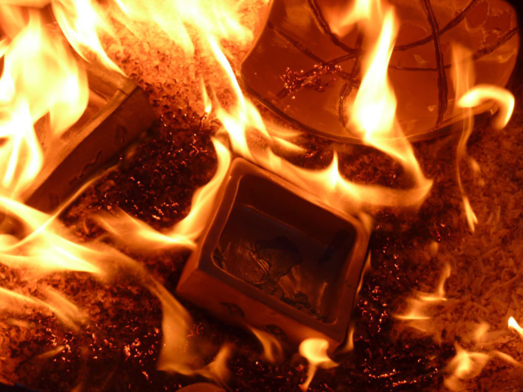 Η συγκεκριμένη διαδικασία είναι ιδιαίτερα εντυπωσιακή καθώς δημιουργεί μοναδικά μεταλλικά χρώματα και το γνωστό κρακελάρισμα στην επιφάνεια των κεραμικών. Η επίδραση της φλόγας, της αιθάλης και του νερού, κάνουν τα κεραμικά αυτά να είναι ξεχωριστά. Η συμμετοχή σε μια τέτοια επίδειξη παραμένει μια μοναδική εμπειρία.